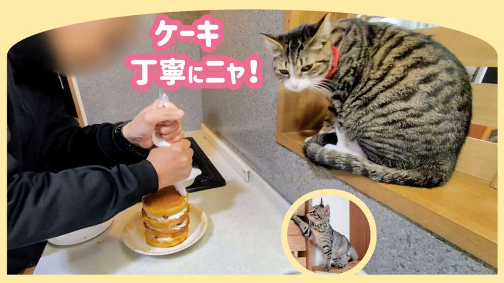 【保護猫🐈】妻のバースデー準備に興味津々の猫丨ローストビーフやケーキも簡単クッキング