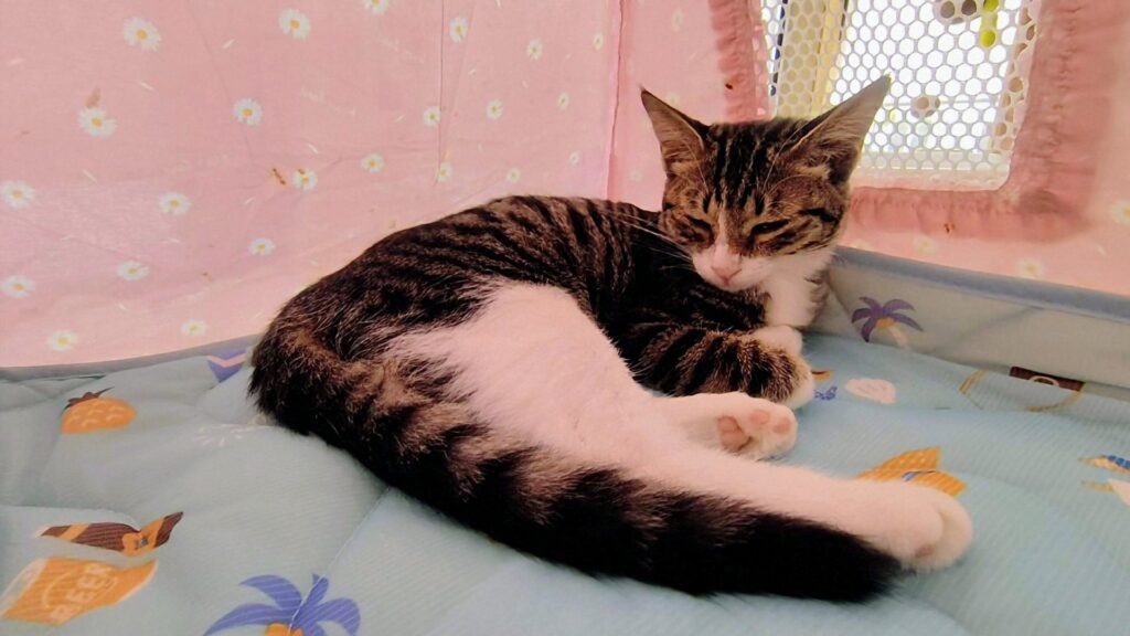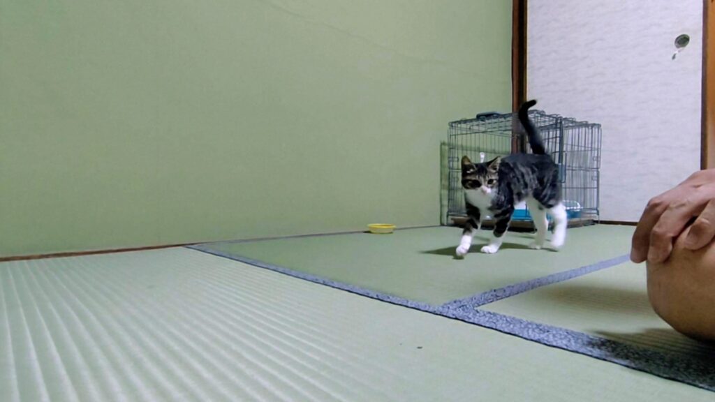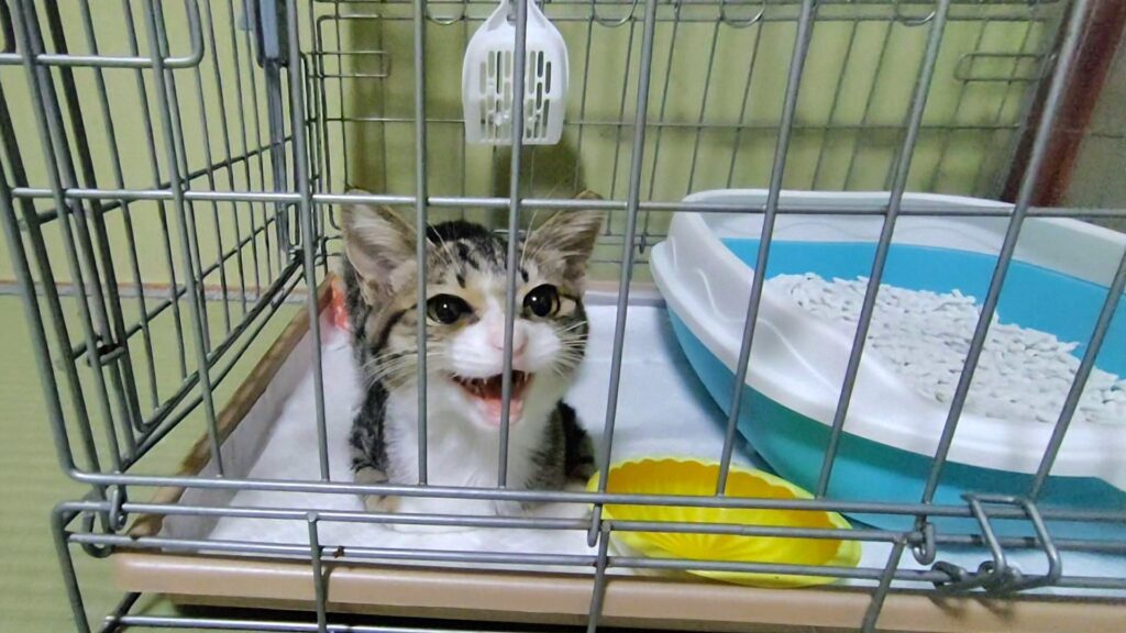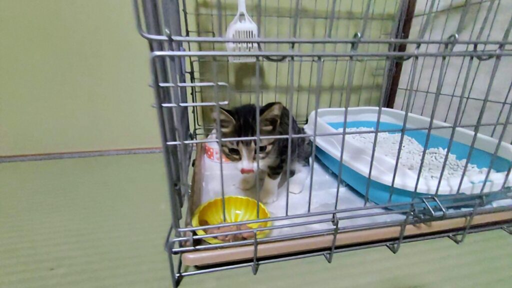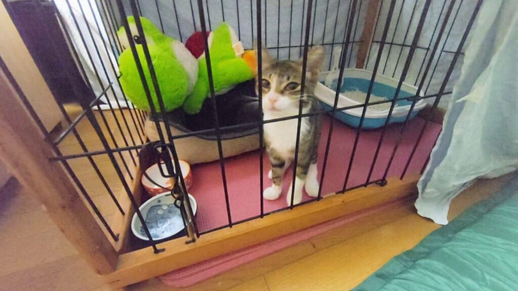 術後の安静とお腹の調子を整えるため、私の部屋で過ごすことに決め、この日から子猫のうにちゃんと同居生活が始まります。