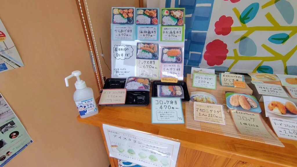 うにちゃんが元気な様子なので、お昼はホテル近くの道の駅へ弁当を買いに行きました。お気に入りの「しのき」さんです。コロッケが有名ですし、メンチカツや弁当もオススメです。