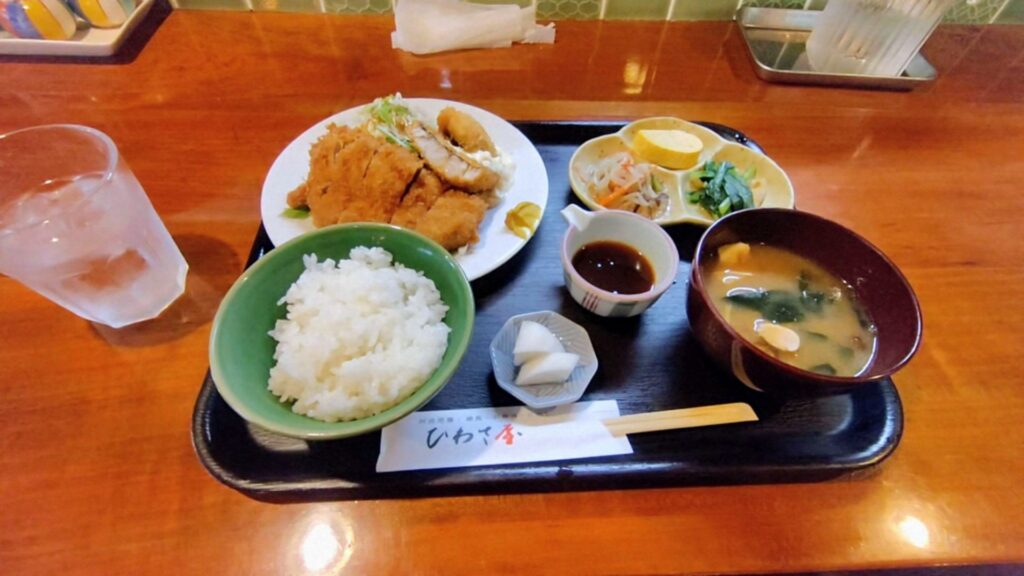 うにちゃんにご飯を食べさせた後、私も昼食です。今日は「ひわさ屋」さんに来ました。ここは人気のお店ですので、お昼は営業時間の早めに行きます。