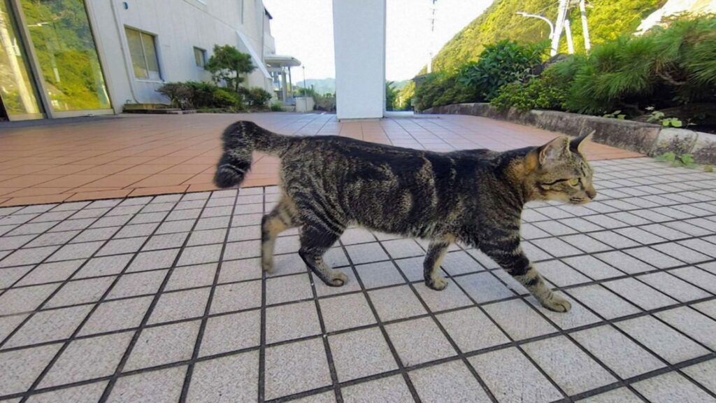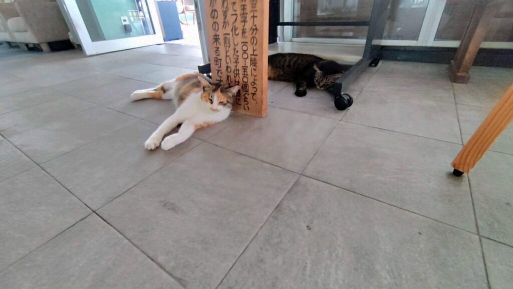 ホテルを出ると、私の推し猫さつきがいました。さつきにもお別れの挨拶です。「また、会いに来るからね」