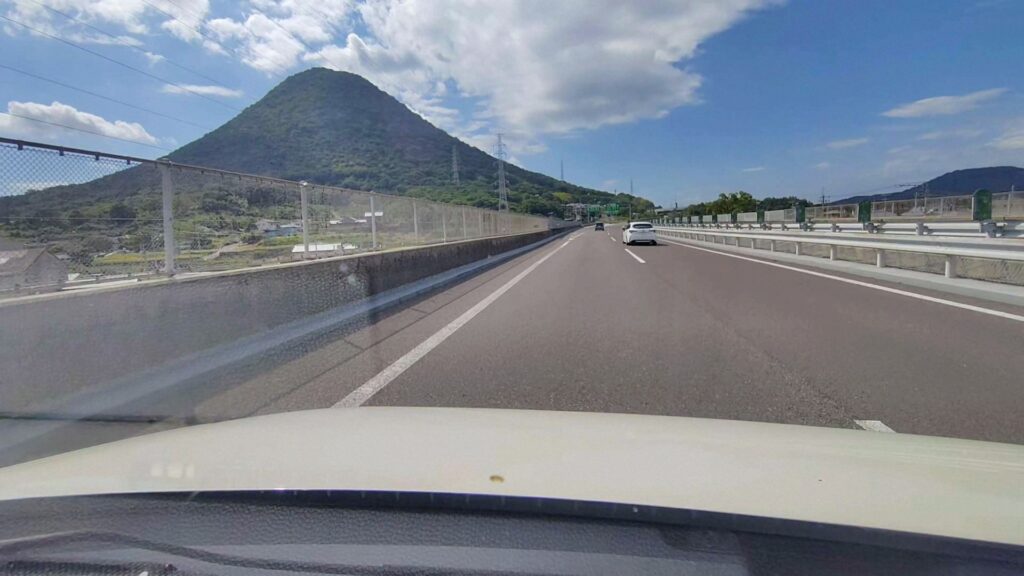 香川県に入りました。飯野山(いいのやま)が見えてきました。別名で讃岐富士と言われます。