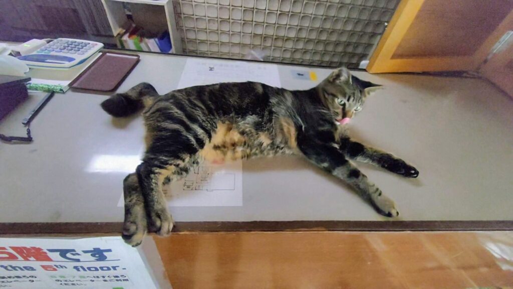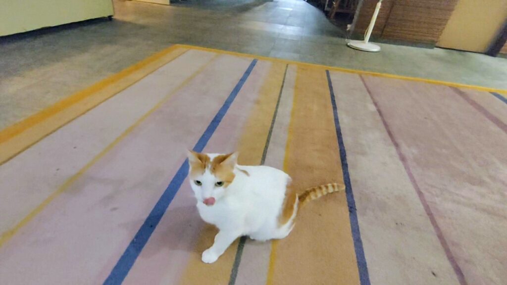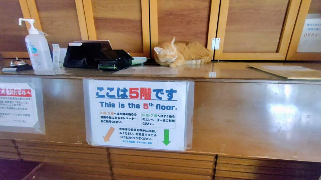 ホテル到着後、フロントへ行くと茶トラのビッグがお昼寝です。今日はビッグがフロントスタッフですね…笑
