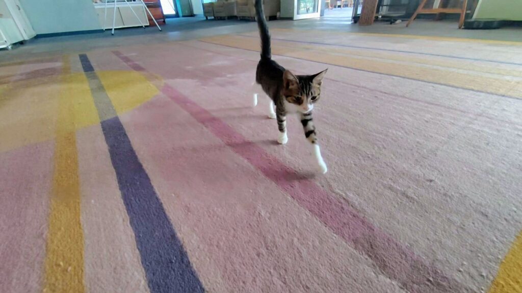 ミィーと、小さな声がしました。子猫のうにちゃんです。人懐っこい猫です。前回フリアコで訪れた時に初めて会いました。