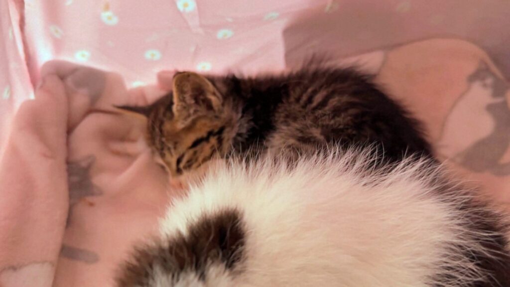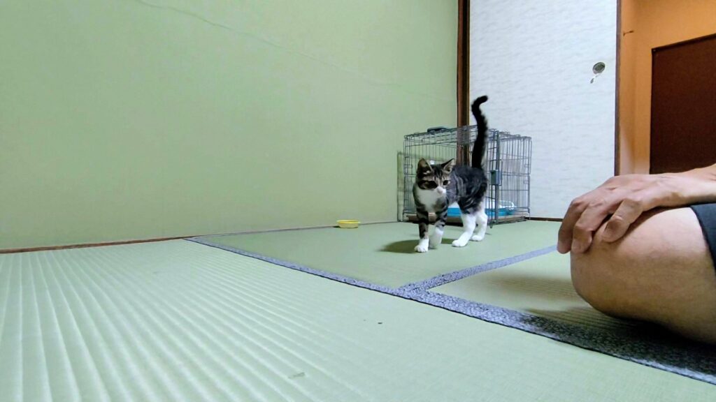 その時うにのお腹の調子が悪かったので私が使用してたスタッフ部屋で、うにのお世話をしました。子猫と同居生活です。