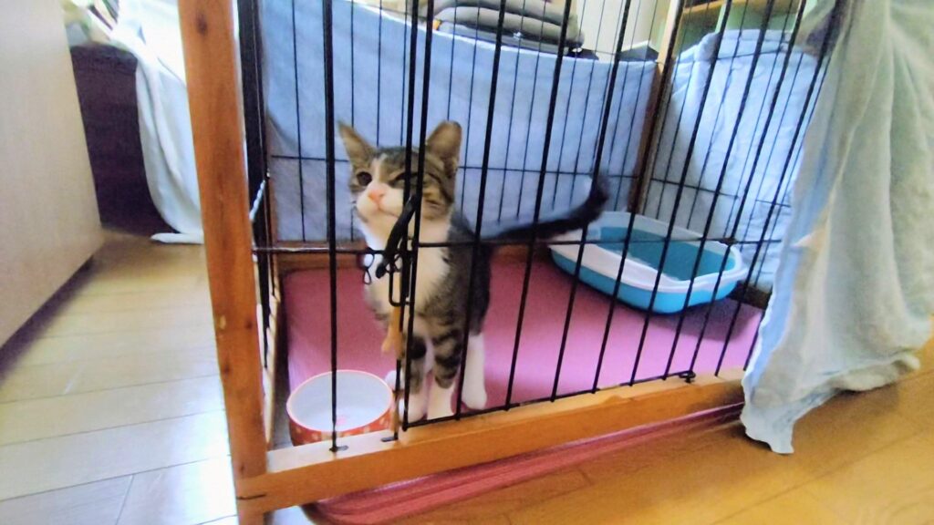 考えた末に、わが家の家族にすることに決めました。クルマで連れて帰り、先輩猫と慣れるまで別室でケージに入れ、一緒に暮らすことにしました。