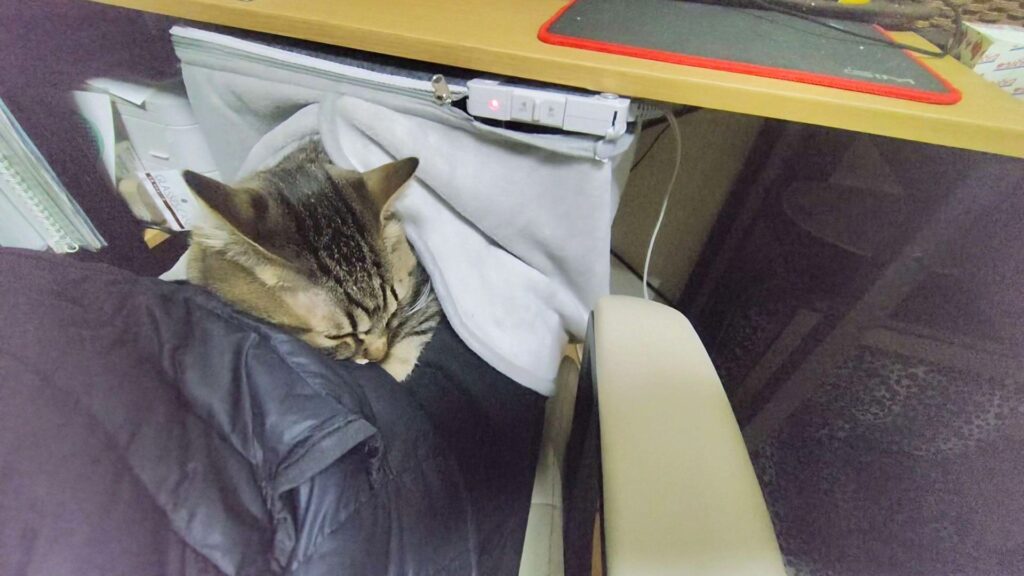 うにが離れた後、そらは私の膝の上にやって来てお昼寝してました…笑