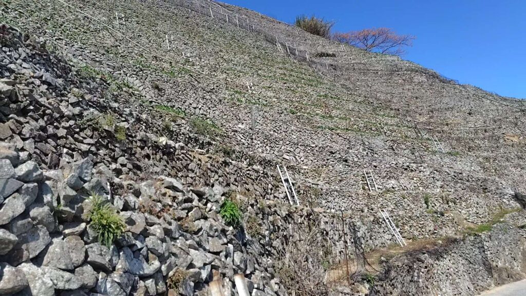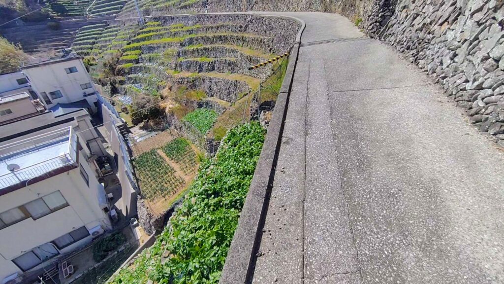 上り坂の通路を歩くと段畑の様子がよく分かります。1段の幅は1mありません!ビックリです。