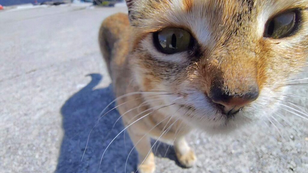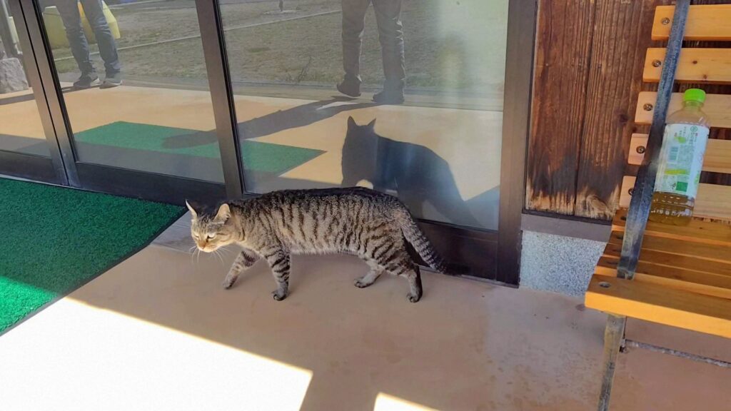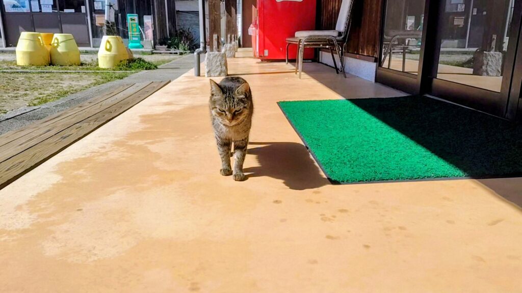 食事ができる「だんだん茶屋」が段畑の近くにあります。ここにもちょっとシャイな猫がいました。